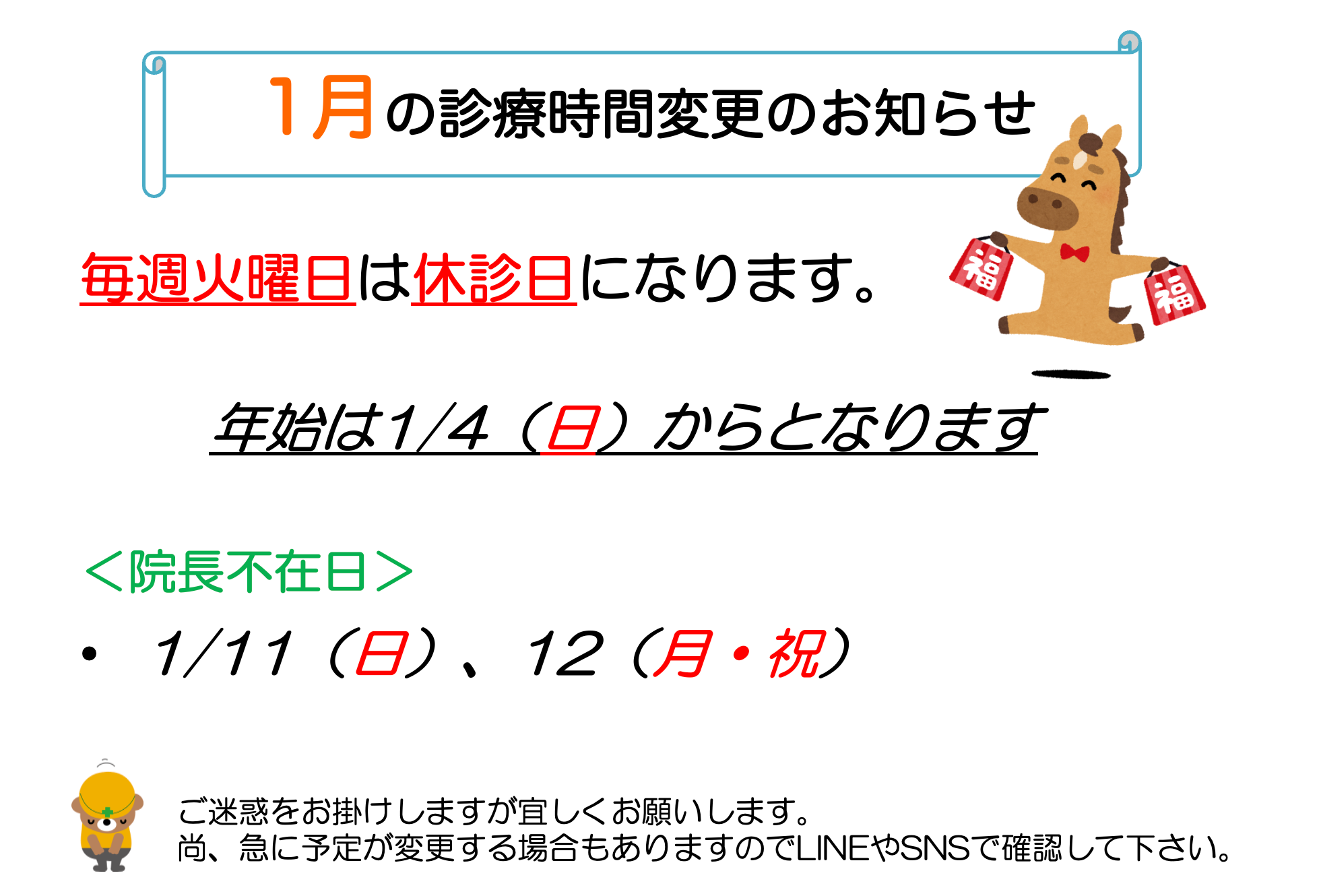 1月のお知らせ2025年12月11日/カテゴリ: お知らせ/作成者: DAIKIANIMALCLINIC 0 0 DAIKIANIMALCLINIC DAIKIANIMALCLINIC2025-12-11 13:33:252025-12-11 13:33:251月のお知らせ