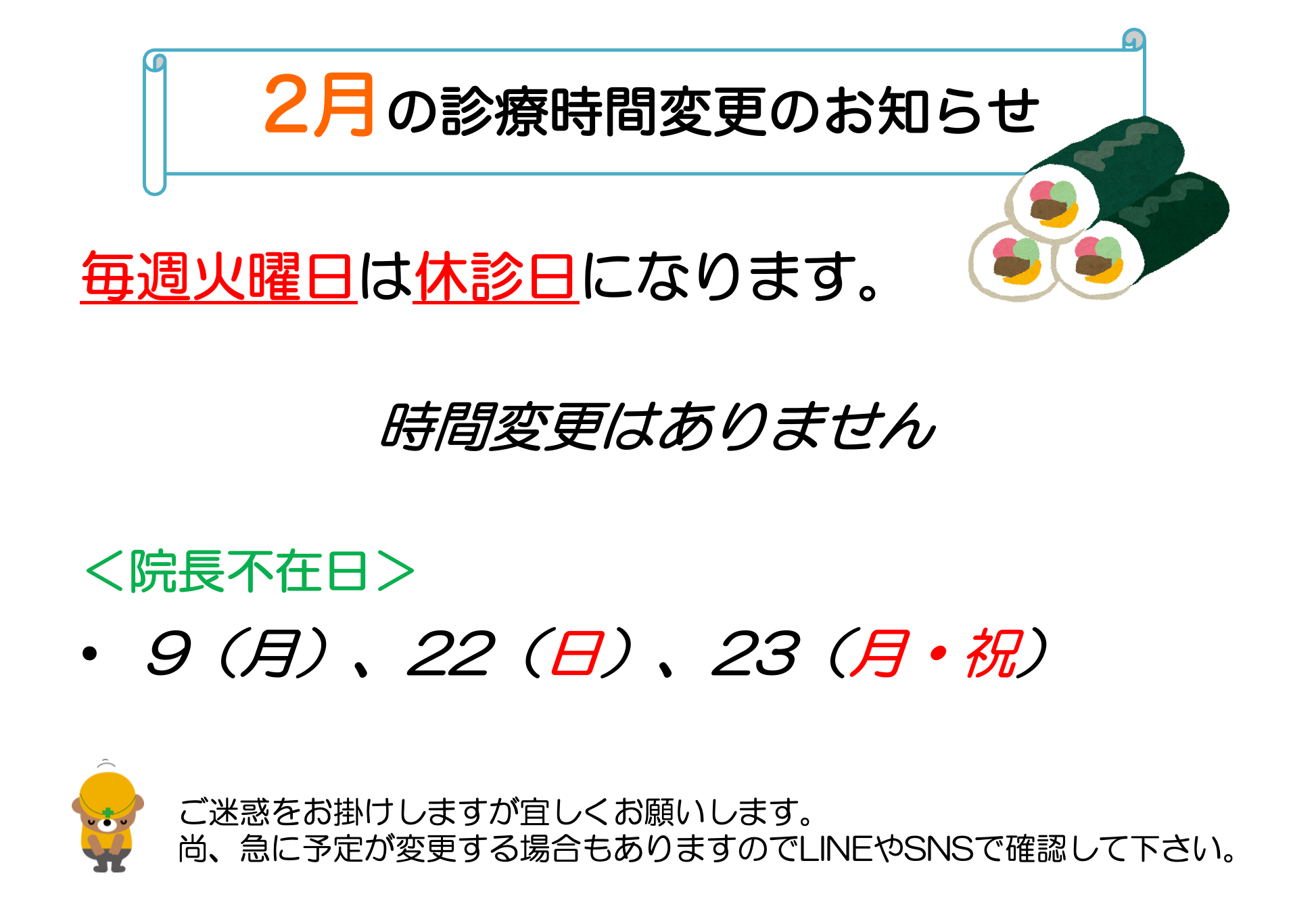 2月の院長不在日2026年1月14日/カテゴリ: お知らせ/作成者: DAIKIANIMALCLINIC 0 0 DAIKIANIMALCLINIC DAIKIANIMALCLINIC2026-01-14 21:02:342026-01-14 21:02:592月の院長不在日